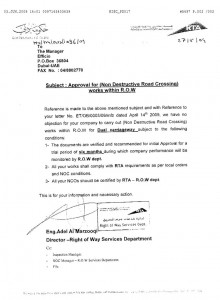 RTA APPROVAL FOR N.D.R.C. WORKS WITHIN R.O.W.